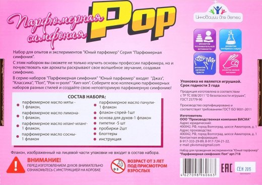 Купить Юный парфюмер Парфюмерная симфония Поп в Новосибирске Вы можете в магазине развивающих и настольных игр "Игры Почемучек"