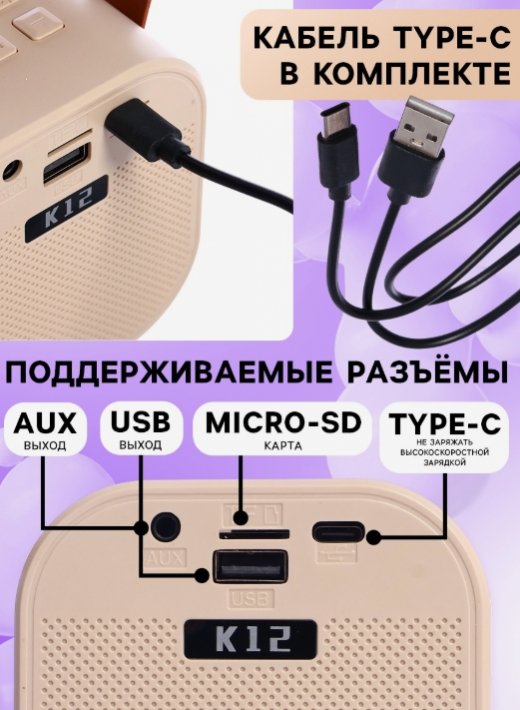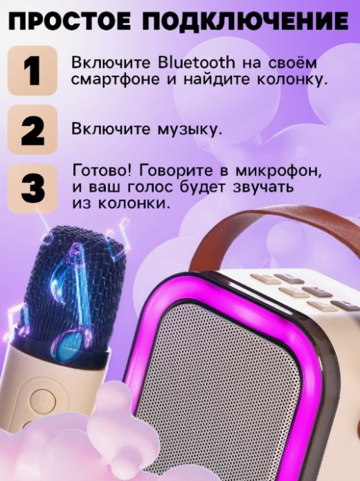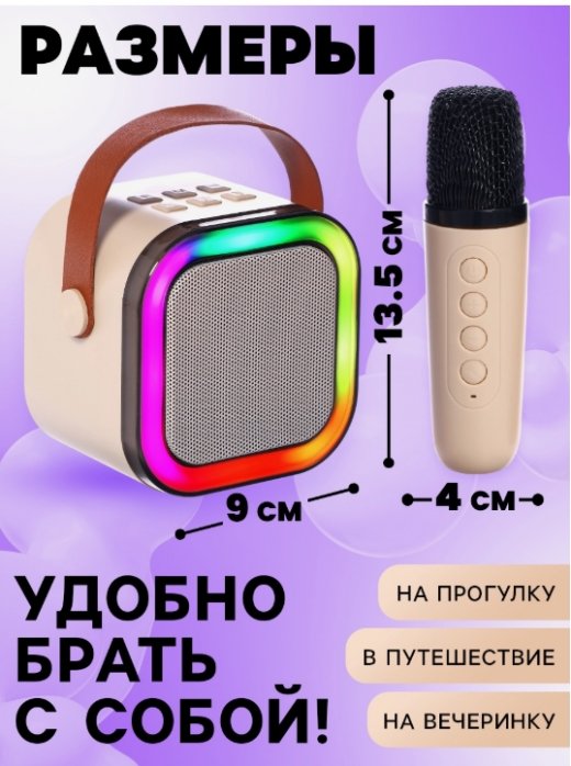 Детское караоке с двумя беспроводными микрофонами — это отличный выбор для весёлых семейных вечеров и праздников. Встроенные звуковые эффекты, подсветка и функция изменения голоса добавят разнообразия, а удобное подключение через Bluetooth, USB и AUX обеспечит универсальность.