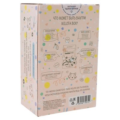 Каждая коробочка милоты наполнена необычными вещицами, которыми будет приятно пользоваться в повседневной жизни: милая канцелярия, уютные товары для дома, стильные аксессуары, предметы для здорового образа жизни и приятные мелочи. Внутри Milota BOX находится до 8 сюрпризов, упакованных в стилизованную подарочную бумагу тишью.