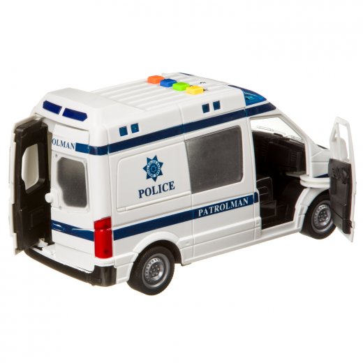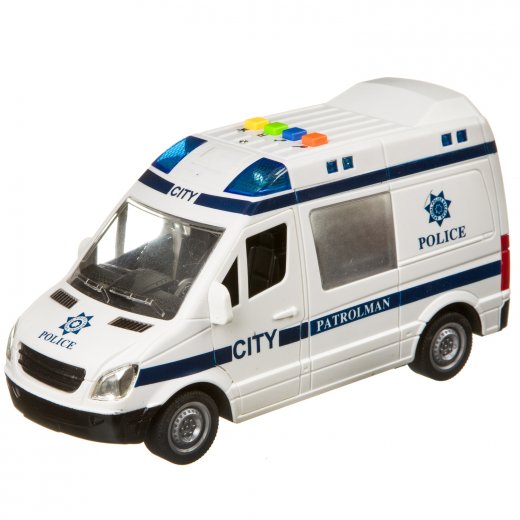Прекрасно детализированный кузов, прочные прорезиненные колеса, инерционный механизм, широкий ассортимент специализированных автомобилей - все это отличает серию автомобилей "Парк техники". Полицейский фургон обладает узнаваемым дизайном, с ним можно придумать множество интересных игр, ведь без полиции - никуда! Машинка обладает световыми и звуковыми эффектами. Игрушка может двигаться самостоятельно, если поставить ее на ровную поверхность и оттянуть назад.