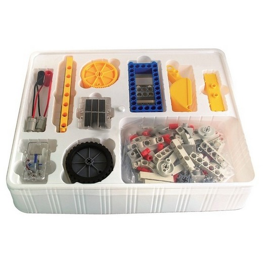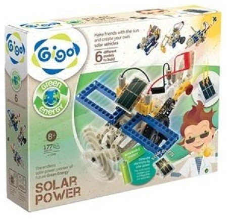 Конструктор Gigo "Solar power" (Гиго. Энергия солнца) позволяет детям на примере моделей собственной сборки узнать, что такое "энергия солнечного света" и как ее использует человек. Занимаясь с набором, юный ученый сможет самостоятельно изготовить 22 действующие модели: мотоциклы, паровой локомотив, бульдозер, экскаватор, вертолеты, фуникулер, самолет и многое другое. Основа набора - цилиндрические шестерни, которые позволяют регулировать скорость или направление вращения валов, и конические шестерни, которые передают движение под прямым углом по отношению к основным шестерням и валам (осям). В наборе 177 деталей и красочно иллюстрированная инструкция, содержащая теоретическое обоснование проделываемых действий и пошаговое их описание. Рекомендуемый возраст: от 8-ми лет.