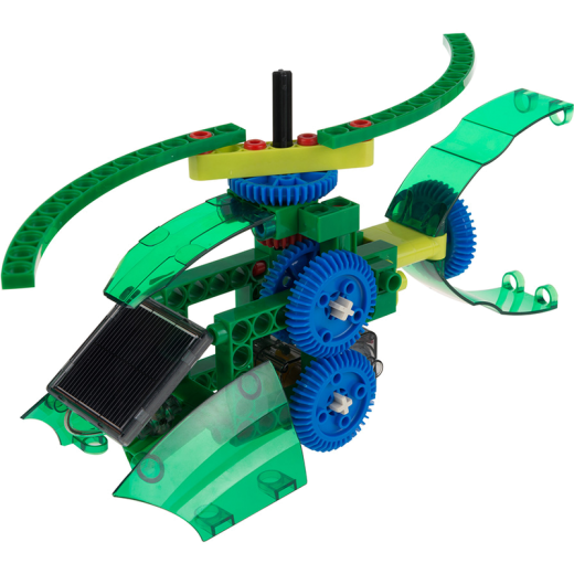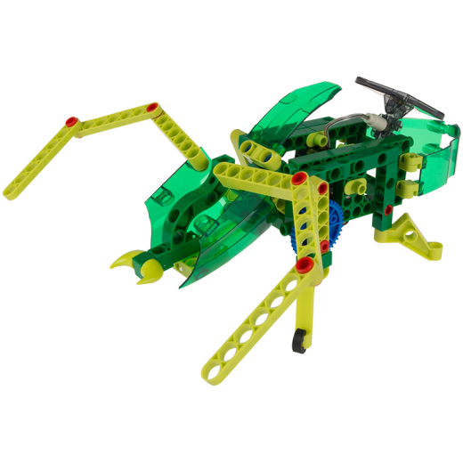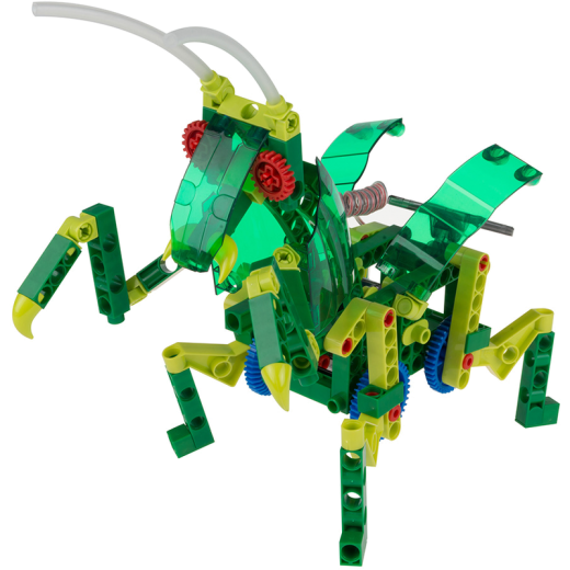 Готовая модель насекомого имеет приятную зеленую расцветку, а также довольно необычный внешний вид. Таких насекомых из набора можно использовать для различных игр. Подвижные конечности, а также механизм который приводит их в движение, сделают игру еще интереснее и увлекательнее.