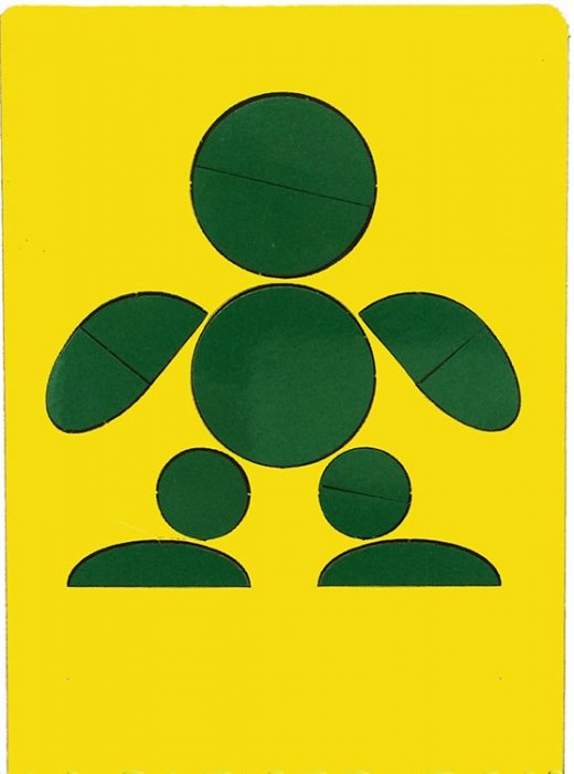 Все детали выполнены из фанеры и тщательно отшлифованы. Играть с набором можно тремя способами: сначала выкладывать фигуры на листах с контурами и подсказками, затем выкладывать на листах с контурами, но уже без подсказок, и, наконец, выкладывать детали, уже не используя ни контур, ни подсказки.