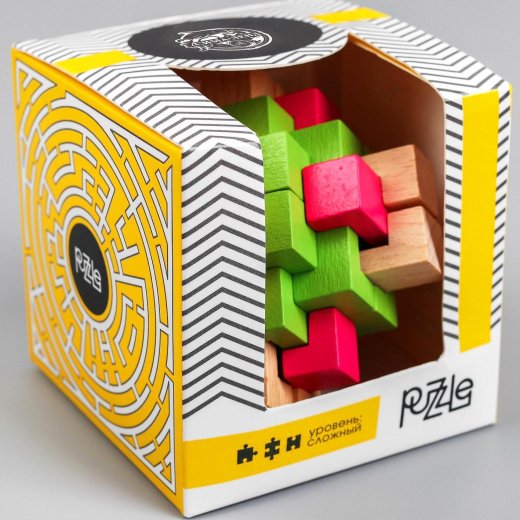 Купить Головоломку деревянную сборную разноцветную 7.5*7.5*7.5 см в Новосибирске Вы можете в магазине развивающих и настольных игр "Игры Почемучек"