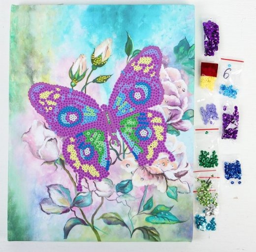 Купить Мозаику из пайеток на холсте Бабочка в Новосибирске Вы можете в магазине развивающих и настольных игр "Игры Почемучек"
