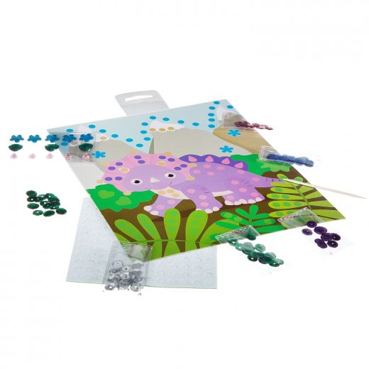 Набор для творчества Картина из пайеток и страз Динозавр это весьма интересный и увлекательный вариант для времяпрепровождения досуга ребенка, который подарит ему массу положительных эмоций, а сам процесс, несомненно, приведет ребенка в восторг и зарядят его отличным настроением. Занятия творчеством подобного рода способствуют развитию фантазии, воображения, координации, аккуратности и мелкой моторике рук.