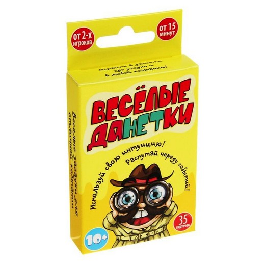 Играть в «данетки» очень просто – ведущий зачитывает часть запутанной истории, а отгадывающие должны восстановить всю ситуацию с помощью вопросов, на которые можно отвечать только «да» или «нет». Внутри коробки вы найдете 35 карточек с историями-«данетками», разгадав которые, вы будете удивлены!