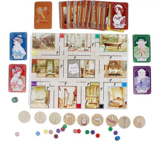 Состав: игровое поле, 9 разноцветных фишек персонажей, 9 фишек орудий убийств, 27 игровых карт, в том числе: 9 карт комнат, 9 карт персонажей, 9 карт орудий убийств, кубик, правила игры.