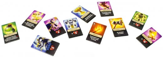 Состав: 13 карт монстров, 4 жетона героев, 24 жетона снаряжения, 4 жетона успеха, 4 памятки, правила игры.