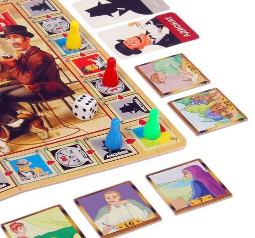 Состав: игровое поле, 4 фигурки игроков, 24 жетона «Картина», 12 карт «Аноним», 6 карт «Прокурор», 6 карт «Адвокат», кубик D6, правила игры.