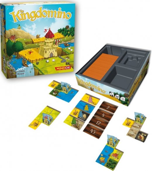 Перетасуйте все доминошки земель и сложите их в общую стопку цифрами вверх. Каждый участник игры получает фигурку Короля, Замок и стартовый тайл королевства. Стартовые тайлы – квадратные, на них устанавливается замок. Снимите с колоды столько доминошек, сколько участников игры и разложите их на столе в порядке возрастания по числам на рубашке. Когда они будут отсортированы, переверните их на лицевую сторону. Расставьте на каждую, по одной фигурке королей игроков. Куда какую, пусть определит жребий. Также, параллельно с первым рядом доминошек, выложите и второй ряд по точно такому же принципу сортировки.
