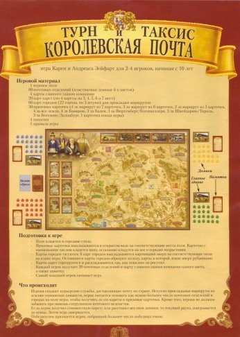 Дворянский род Турн-и-Таксис заведовал доставкой донесений государственной важности на территориях Священной Римской империи с XV века. В настольной игре «Королевская почта» семейное дело попадает в ваши руки. Прокладывайте почтовые линии и открывайте свои отделения в городах. Пользуйтесь помощью государственных служащих и боритесь с конкурентами за первенство в имперских землях.