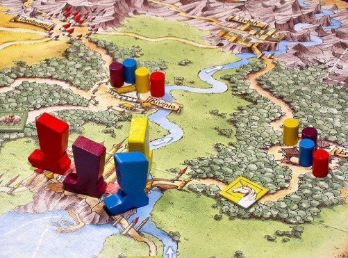 Но прежде чем приступить к путешествию, необходимо распределить транспортных героев по карте. Каждый игрок, беря во внимание свои карты странствий, доступные жетоны транспорта, жетоны соперников, должен разместить в порядке очереди транспортные средства на дорогах. После того как все разместили или отказались размещать жетоны транспорта начинаем этап путешествия. Платим нашим проводникам за их транспорт и перемещаемся по городам. За всю игру каждый из игроков может разместить жетон препятствий, который усложнит перемещение по одному из маршрутов. И так 4-ре раунда.