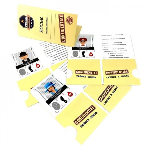 "Детективные истории: История одного преступления" - настольная игра в духе лучших традиций британского детектива-головоломки. Эта игра сочетает в себе более 2-х миллионов комбинаций, и именно поэтому её интересно будет играть огромное количество раз. Погрузитесь в удивительный мир, где придётся понаблюдать за интересными развязками, угадывать последующие действия и строить логические цепочки.