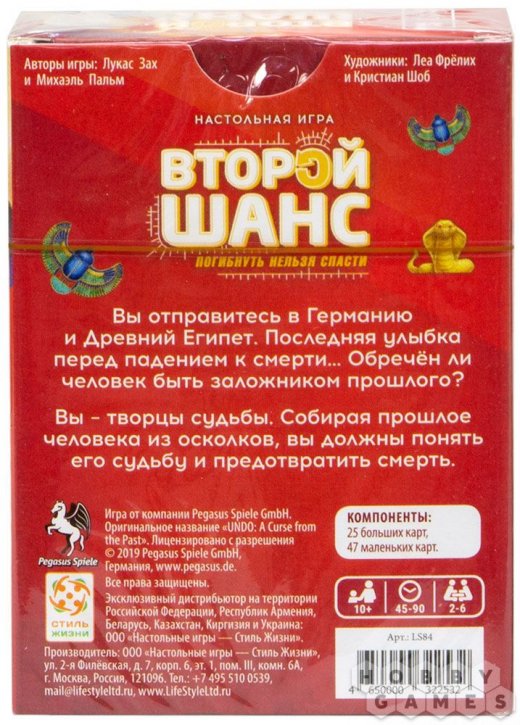 В серии настольных игр-квестов "Второй шанс" игрокам предстоит примерить на себя роли опытных детективов и показать все свои мыслительные способности. Однако, не для того, чтобы, как обычно, раскрыть преступление, а наоборот, предотвратить его. А для этого вам придётся совершить невероятное путешествие назад во времени, изучить первопричины произошедшего, а уже после, сделав соответствующие выводы, поменять судьбу героев игры.