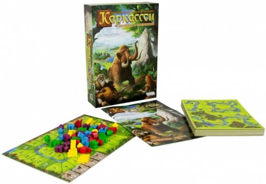 В настольной игре "Каркассон. Охотники и собиратели" игроки по очереди составляют карту первобытной местности с помощью специальных плиток – тайлов. На каждой плитке могут быть расположены различные объекты: реки, озёра, леса, менгиры – и животные, которые там водятся. В "Охотниках и собирателях" встречаются красные олени, туры, мамонты и опасные хищники – саблезубые тигры, которые конкурируют за добычу с вашими охотниками. Каждый раз после того, как вы достраиваете карту, вы можете разместить на новом тайле своего соплеменника или хижину. Поставленный на реку соплеменник становится рыболовом, а если положить его плашмя в свободную низину с животными, то он превратится в охотника. Чтобы привести своё племя к процветанию и победить, вам придётся мыслить стратегически и занимать самые выгодные территории.