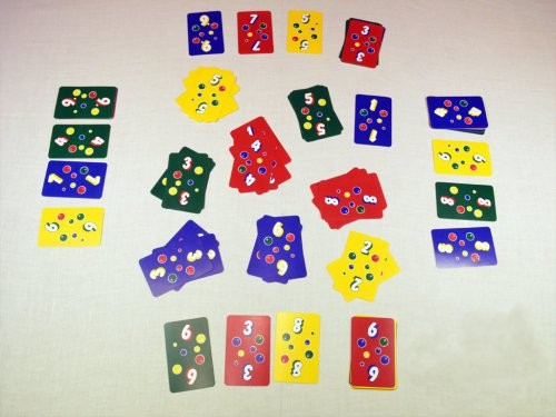 · Карточки можно класть, только если у новой карточки цвет совпадает с цветом колоды и если она на одну цифру выше (например, синюю карточку «2» можно положить на синюю карточку «1»; синюю карточку «3» можно класть только на синюю карточку «2»)