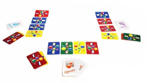 · Карточки можно класть, только если у новой карточки цвет совпадает с цветом колоды и если она на одну цифру выше (например, синюю карточку «2» можно положить на синюю карточку «1»; синюю карточку «3» можно класть только на синюю карточку «2»)