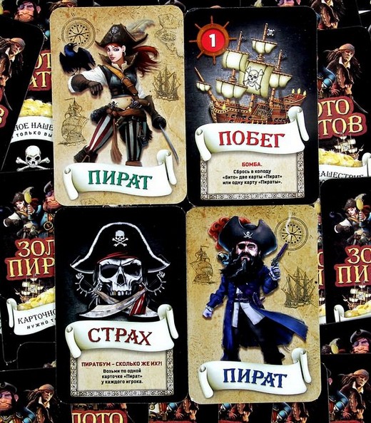 Настольная игра «Золото пиратов» это невероятная игра, кружащая голову, ведь здесь столько приключений и риска. А все ради сокровищ! Каждый участник представляет себя пиратом, грозой семи море, и идет к цели. Игроки скидывают карты с рук, выполняют комбинации и побеждают за счет большего количества очков.