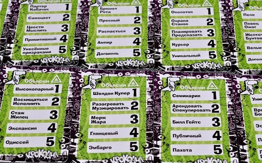 Правила очень просты: нужно объяснять слова так, чтобы вас поняли. В игре 84 карты с заданиями, на каждой — по пять слов или словосочетаний. Карты «покажи» — соответственно, на показ жестами; «нарисуй» — вы пробуете нарисовать слово за минуту, а «объясни» — объясняете синонимами.