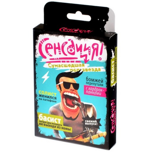 Настольная игра Сенсация Сумасшедшая поп-звезда - это веселое развлечение для подростков и взрослых. Игра уместна для совместного досуга как семьи, так и компании друзей.