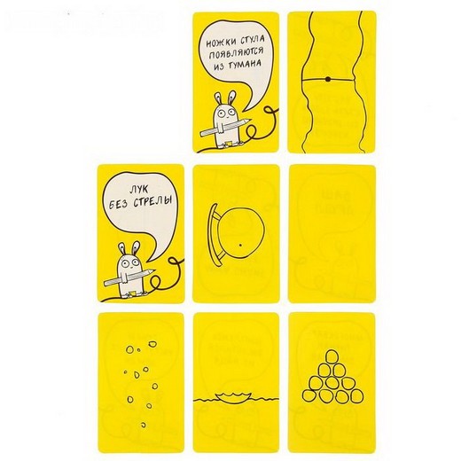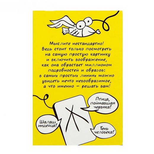 Вам нужно будет придумывать десятки разных ассоциаций, глядя на одну карточку. Вы только посмотрите на этот полукруг! Это дно летающей тарелки или половинка лимона? А может быть, это часть растаявшего снеговика или купол метеостанции? В других вариантах игры участники должны будут догадаться, к какой карте относится ваша ассоциация, или даже дорисовать друдлы, превратив их в целую историю!
