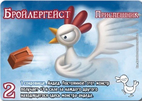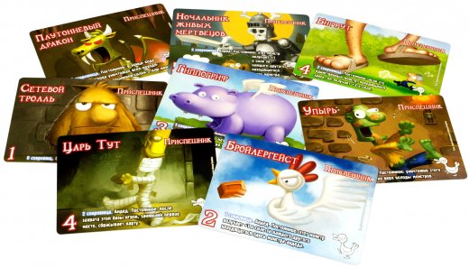Игроки по-очереди защищают замок от надвигающихся монстров с помощью «ударных карт». Также помогать в уничтожении монстров вам будут «карты сокровищ», к примеру, оружие усиливает вашу «ударную карту», а зелье накладывает отрицательный эффект на монстра. Если у вас нет сокровищ, то вам ничего не мешает договориться с другими игроками.