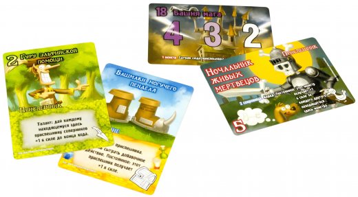 Помогай другим игрокам, чтобы спасти замок от разрушения, но не забывай и о своей выгоде, ведь только один из вас станет Великим манчкином! Игра считается завершенной когда убиты все монстры, или же - пала последняя башня замка победа достается тому, кто набрал максимальное количество баллов