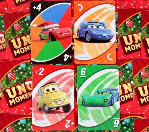 В колоде есть особые карточки с персонажами «Тачек». С этими привилегиями вы сможете изменить течение игры! Красотка Салли, Луиджи и Мэтр приготовили вам новогодний подарок: благодаря им соперники будут пропускать ходы, добирать карты на руки и менять направление. А если вам встретится Молния Маккуин, то вы сможете выкладывать карты по своим правилам!