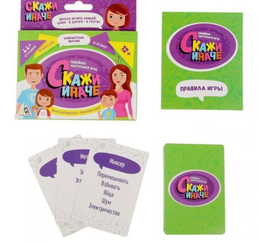 Настольная игра компактная версия Скажи иначе развивает воображение, словарный запас, интеллект, творческое мышление, абстрактное мышление, память, внимание, коммуникативный навык, раскованность при выступлении перед людьми, помогает лучше узнать того, с кем играешь.