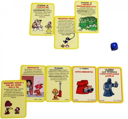 Состав: 168 карт, кубик, правила игры.