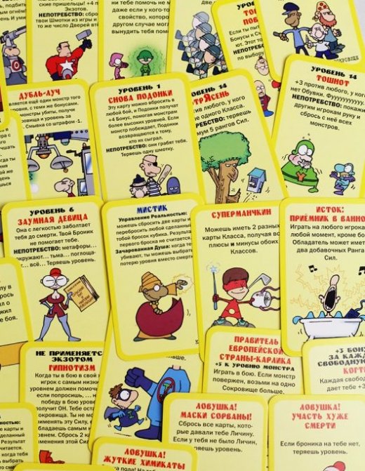 Чтобы победить монстра, нужно превзойти его уровнем. Кроме того, сила вашего персонажа увеличивается, если у него есть шмотки и бонусы. Если победить монстра не получается, у игрока есть два выхода: звать на помощь или сматываться. Если ваш Манчкин одолел монстра, он продвигается на один уровень. Победивший также забирает из колоды Сокровищ столько карт, сколько указано на карте убитого монстра.