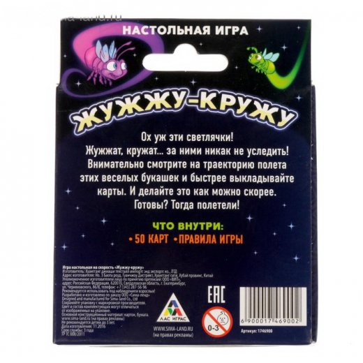 Настольная игра Жужжу-кружу – внимательно смотрите на траекторию полёта этих весёлых букашек и скорее выкладывайте карты. Делайте это как можно быстрее, и вы победите. Готовы? Тогда полетели!