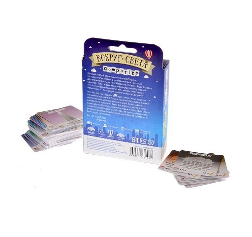 Настольная игра comparity Вокруг света - не только поможет весело скоротать вечер в компании друзей, но и поспособствует развитию кругозора и уровня эрудиции. В игру включены сто самых примечательных мировых архитектурных сооружений, среди которых Колизей, Тадж-Махал, Эйфелева башня и многие другие. Возможны два варианта игры - сравнение годов постройки достопримечательностей или сравнение их высоты. Для большего интереса в игру внесен элемент случайности и везения - поэтому даже у маленького ребенка есть шанс.