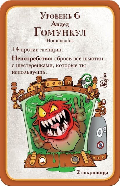 Чтобы победить монстра, нужно превзойти его уровнем. Кроме того, сила вашего персонажа увеличивается, если у него есть шмотки и бонусы. Если победить монстра не получается, у игрока есть два выхода: звать на помощь или сматываться. Если ваш Манчкин одолел монстра, он продвигается на один уровень и забирает из колоды Сокровищ столько карт, сколько указано на карте убитого монстра.