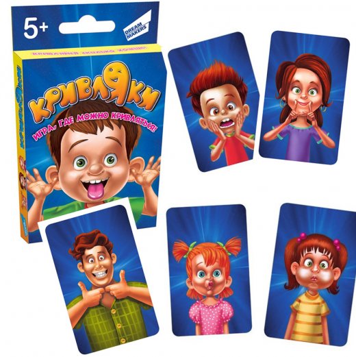 Настольная игра Кривляки – игра, где можно кривляться! Корчите друг другу смешные рожицы и соберите как можно больше комплектов одинаковых карточек! Цель игры проста - собрать как можно больше коллекций из трех одинаковых карточек.