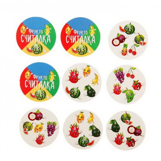 Настольная игра Фрукто считалка – это карточная игра для детей от 4 лет, которая поможет быстро освоить навыки устного счета. Цель игры - первому найти десятку одинаковых фруктов на двух карточках, которые в сумме составят 10 и забрать карточки себе. Картинки фруктов должны совпадать обязательно. Как только игрок находит десятку, он выкрикивает, например "яблочная десятка" и забирает эту карточку себе.