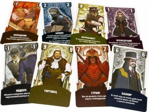 Настольная игра Корё – легендарная карточная игра в стиле стимпанк о политическом противостоянии влиятельных кланов исторической родины Кореи. Играя за несколько классов персонажей (шпион, банкир, страж, торговец и др.), участники соревнуются в получении очков влияния и стремятся захватить власть над империей. Не так-то просто завоевать доверие и покровительство в мире предательств, шпионажа и подкупов.