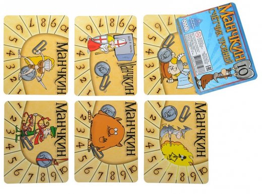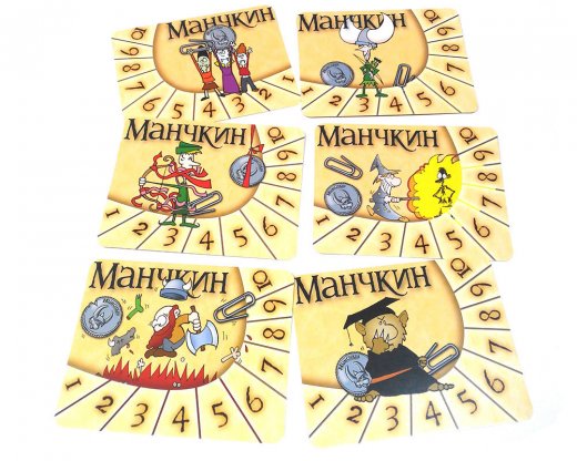 Данный набор предназначен для заядлых игроков в Манчкин. В наборе содержится 6 карточек, на которых нанесена шкала, где и отмечается текущий уровень игрока. Для отображения новейших данных в счетчике уровней понадобится что-нибудь миниатюрное: скрепка, монетка или что-то вроде этого. В случае попадания под эффект проклятия «смены пола» достаточно перевернуть карточку обратной стороной. Кстати – рисунок был создан небезызвестным Джоном Коваликом.