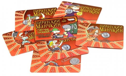 Данный набор предназначен для заядлых игроков в Пиратский Манчкин. В наборе содержится 6 карточек, на которых нанесена шкала, где и отмечается текущий уровень игрока. Для отображения новейших данных в счетчике уровней понадобится что-нибудь миниатюрное: скрепка, монетка или что-то вроде этого. В случае попадания под эффект проклятия «смены пола» достаточно перевернуть карточку обратной стороной. Кстати – рисунок был создан небезызвестным Джоном Коваликом.