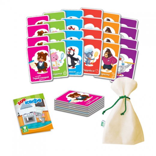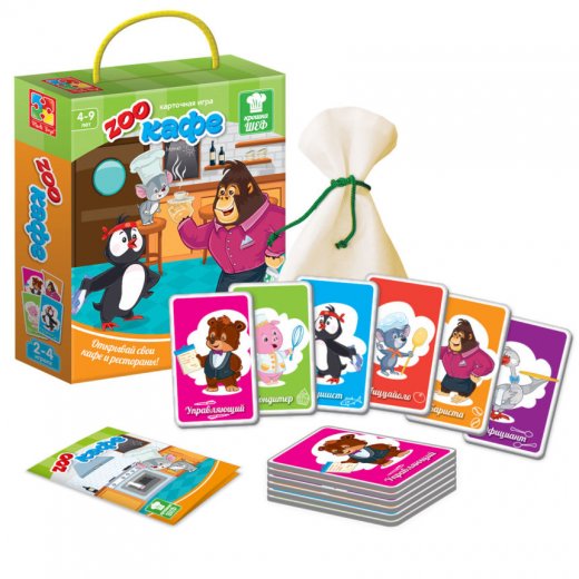 Компактная и увлекательная карточная игра "КрошкаШеф Зоокафе" отлично развивает память, мышление, внимание, скорость реакции и качества лидера.