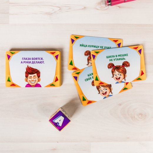 Первый игрок вытягивает карточку и читает про себя, что на ней написано. Его задача - зашифровать фразу на карте. А поможет ему в этом кубик.