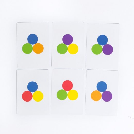Для дальнейшего понимания игры важно заметить, что среди всех матрешек нет двух таких, у которых совпадали бы действия или сочетания цветов.; Из остальных карточек (на которых изображены комбинации цветов) формируем колоду и кладем ее на середину стола рубашкой вверх.