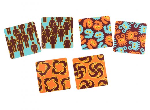 Некоторые узоры могут быть одинаковыми на трех картах. Если на поле или на одной из стопок появилась карта с точно таким же узором, как у выигранной ранее пары карт, то вам нужно положить одну руку на эту пару, а другую – на карту. В результате вы выигрываете все три карты и забираете их себе. Отличная возможность забрать пару соперника или отстоять свои карты.