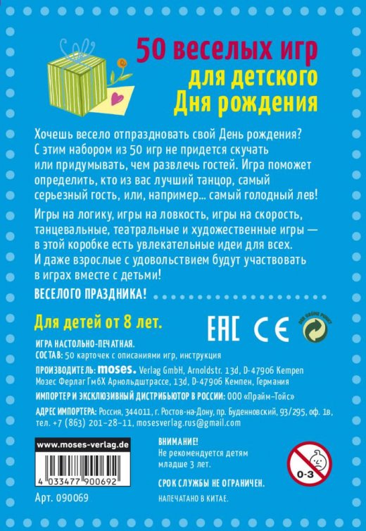 Хочешь отпраздновать свой День рождения и провести его весело? С этим набором из 50 игр не придется скучать или придумывать, чем развлечь гостей. Вы сможете определить, кто из вас - лучший танцор, самого серьезный гость, или, например…самый голодный лев!