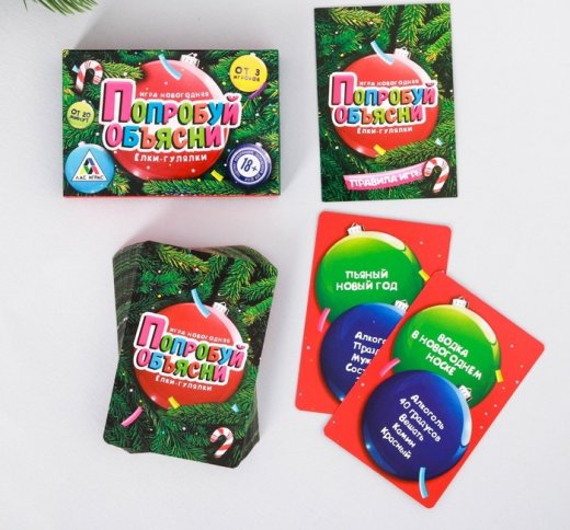 Перед вами популярная игра, где нужно объяснять слова, не используя при этом запрещённые. Здесь собраны самые редкие и необычные словосочетания, над которыми можно вдоволь посмеяться в кругу друзей в новогоднюю ночь. Также в игре есть усложнения для самых опытных.