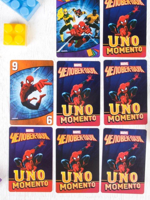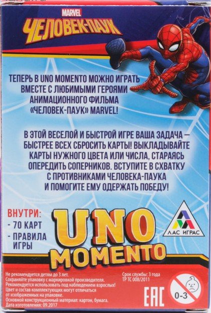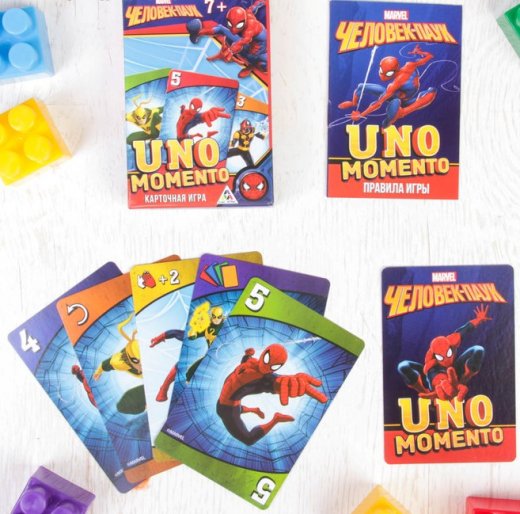 Купить карточную игру "UNO momento человек паук" в Новосибирске Вы можете в магазине развивающих и настольных игр "Игры Почемучек".