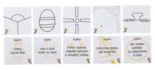 Друдлы – глядя на такое название, мало кто сможет понять смысл игры, и давайте мы сейчас объясним. Друдлы представляют собой карточки, где нарисовано что-то, не попадающее под определение рисунок или картина. Это каракуля, при взгляде на которую у человека могут возникать различные ассоциации. Вот тут-то и раскрывается вся соль – нужно увидеть ассоциацию, придумать историю и хорошо ее рассказать, чтобы остальные участники могли ее оценить по достоинству.