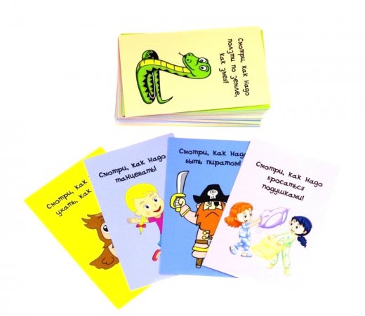 Умеешь ходить, как пингвин, или изображать пирата? Научи других! Вытащи фант, покажи то, что написано на карточке, а другие пусть за тобой повторяют. Побеждает тот, кто лучше всех повторит задание. Весёлые фанты — большие таланты!