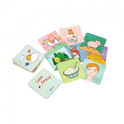 Живое общение и радость творчества - вот что скрывается в маленькой коробочке с игрой "Слово не воробей". "Слово не воробей" - настольная игра, в которой сочиняются сказки, оживают персонажи и крылатые выражения. Несколько вариантов правил позволят найти интересный вариант и для детей, и для взрослых. Можно всем вместе сочинять бесконечную историю, тренируя память, можно рассказывать историю по случайным карточкам, проверяя свою находчивость, можно вспоминать крылатые выражения, оживляя картинки.